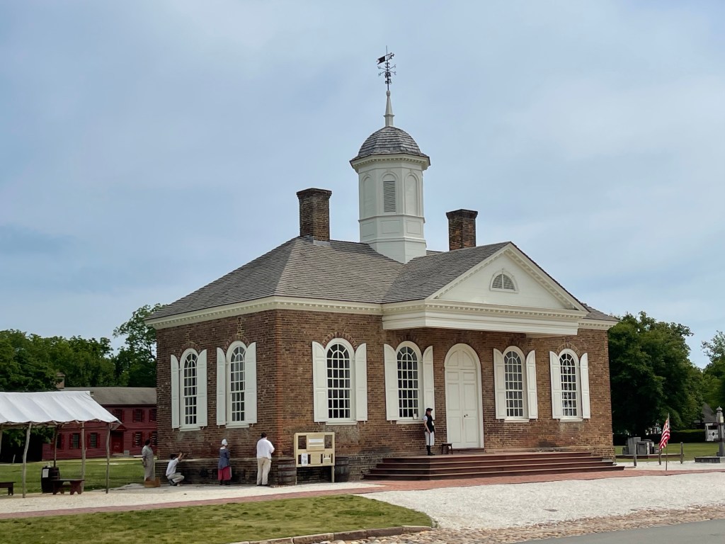 Seeing the flag of Great Britain flying above fills you with a sense of awe, especially over a building like this. The two circular wings you see above contained the Virginia High Court (left), and the long-lived Virginia General Assembly, then known as the famous “House of Burgesses.”