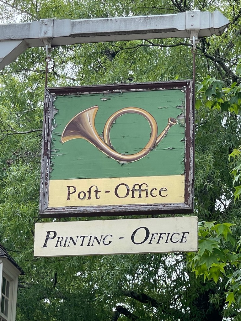 Home to the printing offices (very important in those days for newspapers, books, playing cards, etc.), the Poft Office made us chuckle a bit, spelling back then was slightly different from today.
