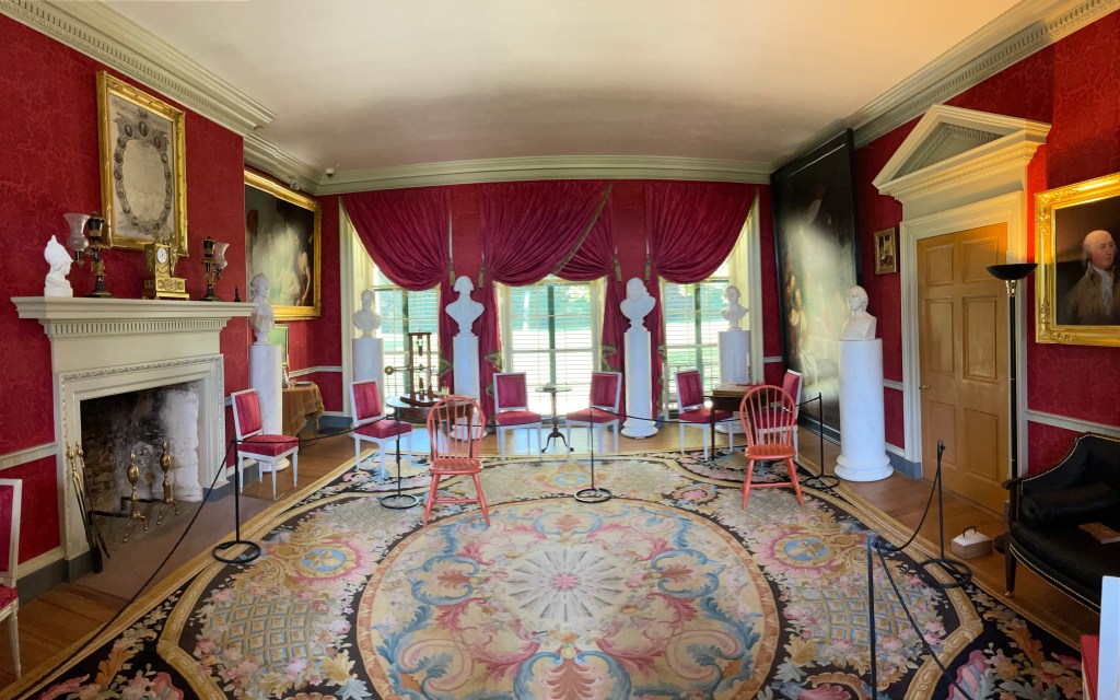 Heavily evocative of the red-walled parlor of Monticello, this room surrounds you with the profiles of the “Men of the Revolution”, including Jefferson, Washington, and Franklin.