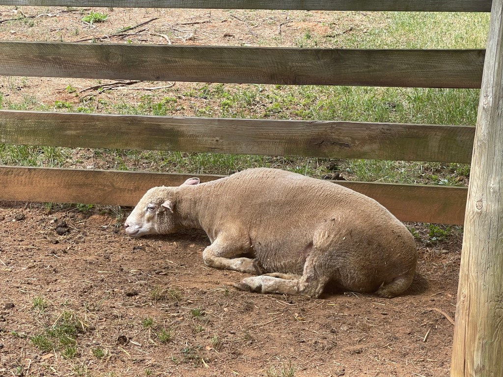 Still a “living-history” farm, sheep and chickens roam the fields nearby. Though in the case of this poor sheep trying to take shelter in the shade, the 90′ weather was just too much for him.