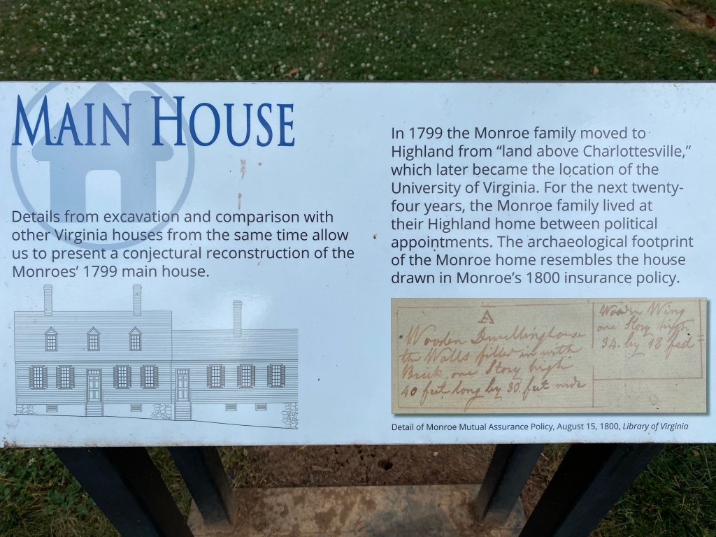 Third, the foundations you see on the ground (if you squint) are the actual ones of Monroe’s original home! Archaeological work continues on the property to further learn more about it’s original structure, and the fire that destroyed it.